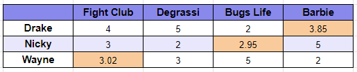 actual_ratings_matrix = np.nan_to_num(ratings_matrix)Lastly, let's write a print function to display a nice array of data with the actual ratings and the predicted ratings of the friends.