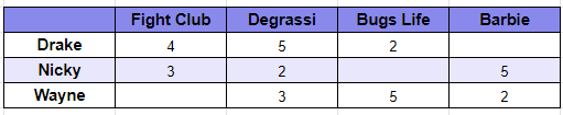 Using Python, I have made the array where the rows are the friends and the columns are the movies watched - np.nan represents not watched movies.